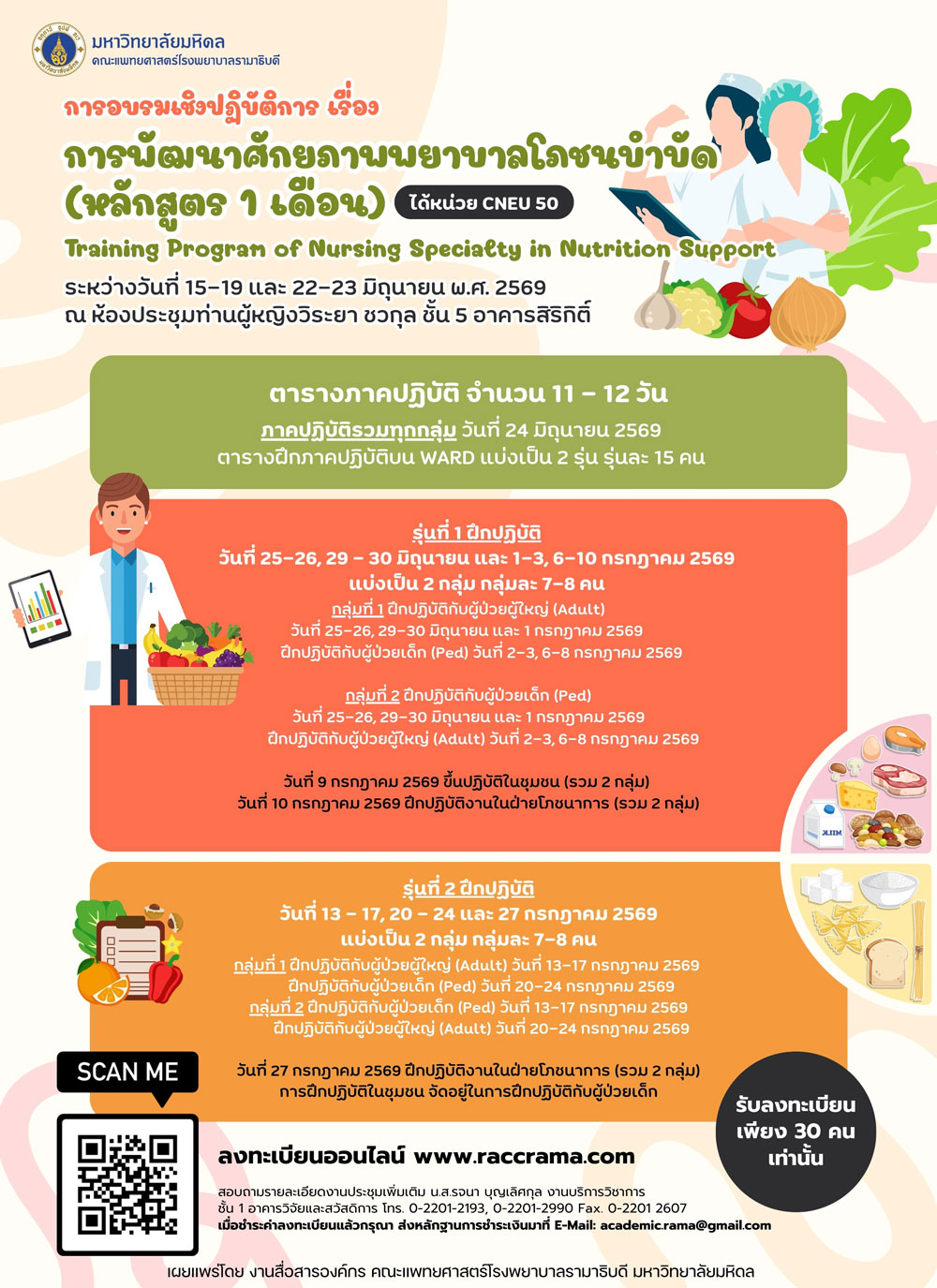 โครงการอบรมเชิงปฏิบัติการ เรื่อง “การพัฒนาศักยภาพพยาบาลโภชนบำบัด” (หลักสูตร 1 เดือน)