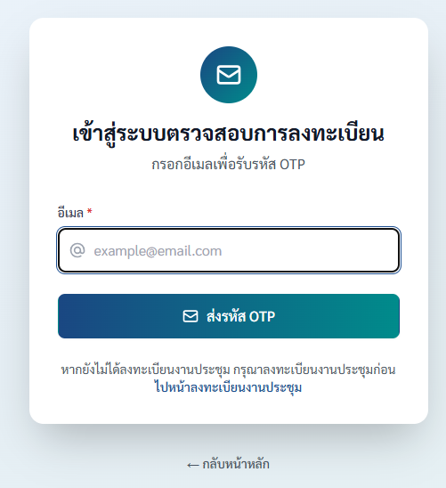💡 ระบบนี้ ไม่ต้องสร้างบัญชีหรือจำรหัสผ่าน — ใช้อีเมลและรหัส OTP เท่านั้น