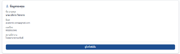 - แสดงชื่อ, อีเมล, เบอร์โทร, สถานที่ทำงาน, สาขาวิชาชีพ