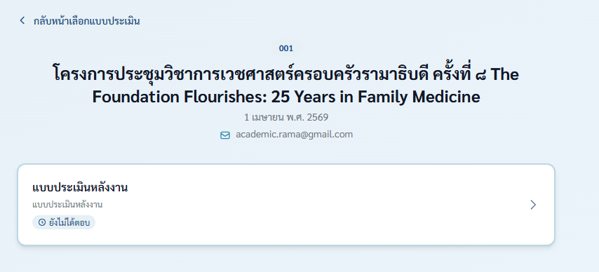 - แบบประเมิน (ถ้ามี) — สามารถทำแบบประเมินหลังลงทะเบียนเสร็จได้ทันที
