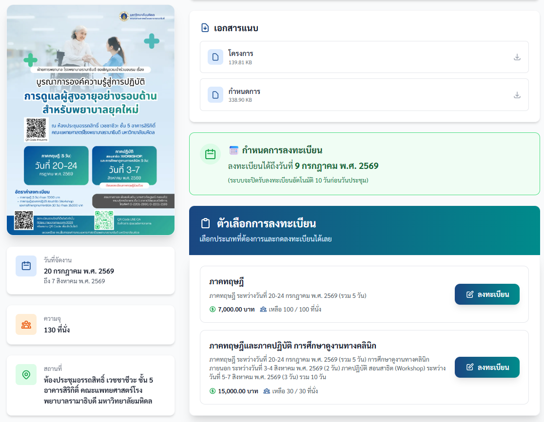 🗂️ หน้ารายละเอียดการลงทะเบียน (กด "ดูรายละเอียด")