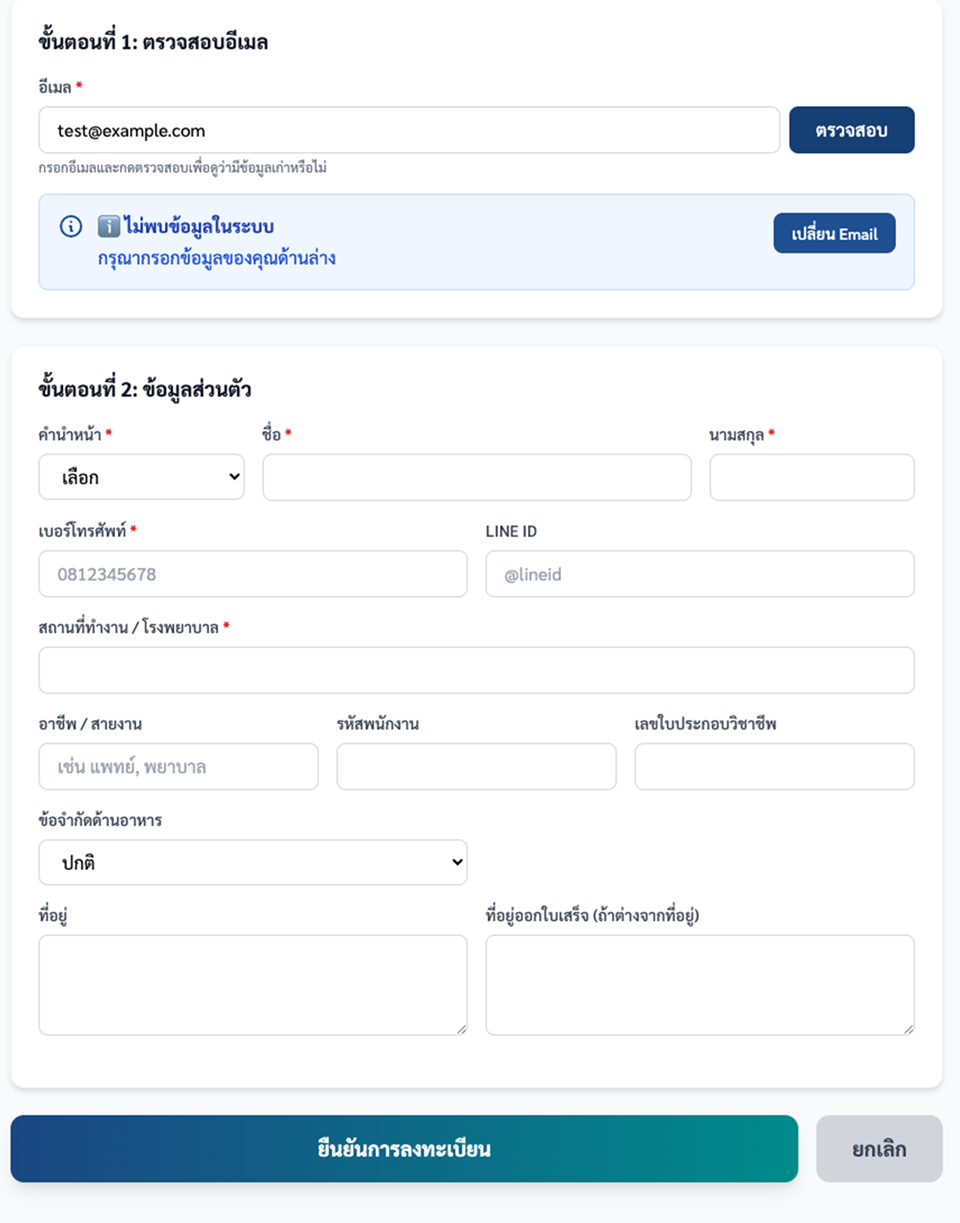 จะถือว่าเป็น ผู้ลงทะเบียนใหม่ — สามารถกรอกข้อมูลส่วนตัวได้เองทุกช่อง