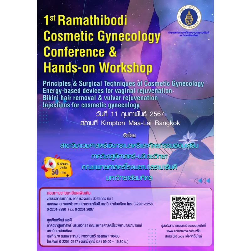 ในปัจจุบันการรักษาผู้ป่วยด้านนรีเวชด้านความงามและการผ่าตัดตบแต่งอวัยวะเพศ (Cosmetic gynecology) เป็นที่นิยมอย่างแพร่หลาย และมีแพทย์ที่ผ่าตัดตกแต่งอวัยวะเพศสตรีได้ทำการโฆษณาประชาสัมพันธ์จำนวนมาก แต่ยังไม่มีหลักสูตรหรือสถาบันที่จัดการอบรมด้านนี้อย่างเหมาะสม การจัดประชุมและ Workshop ด้าน Cosmetic gynecology จะเป็นประโยชน์แก่แพทย์ผู้สนใจทั้งการรักษาโดยการใช้พลังงานรักษาในช่องคลอดและอวัยวะเพศ การฉีด PRP เพื่อรักษาปัสสาวะเล็ดและ Sexual dysfunction การผ่าตัดเสริมความงามอวัยวะเพศที่ถูกต้องตามหลักวิชาการ และสามารถให้คำปรึกษาแนะนำเกี่ยวกับธรรมชาติของความหลากหลายของรูปลักษณ์ภายของอวัยวะเพศ รวมถึงสามารถให้ข้อมูลแก่ผู้รับบริการว่าประสิทธิผลของการผ่าตัดรวมถึงภาวะแทรกซ้อนที่อาจเกิดหลังการผ่าตัด เช่น อาการเจ็บ เลือดออก การติดเชื้อ แผลเป็น ความรู้สึกที่เปลี่ยนไป เจ็บขณะมีเพศสัมพันธ์ ซึ่งอาจต้องมีการผ่าตัดแก้ไขซ้ำ และปัจจุบันการใช้เลเซอร์ การใช้คลื่นความถี่วิทยุเพื่อรักษาโรคในช่องคลอดมากขึ้น เช่น ภาวะช่องคลอดแห้ง ช่องคลอดหลวม ภาวะหย่อนของอุ้งเชิงกราน ไอจามปัสสาวะเล็ด จึงทำให้ สาขาวิชาเวชศาสตร์เชิงกรานสตรีและศัลยกรรมซ่อมเสริม ภาควิชา สูติศาสตร์-นรีเวชวิทยา คณะแพทยศาสตร์โรงพยาบาลรามาธิบดี เล็งเห็นความสำคัญและความจำเป็นดังกล่าว จึงจัดให้มีโครงการอบรมให้ความรู้แก่แพทย์ เพื่อให้เกิดแลกเปลี่ยนเรียนรู้ ทั้งนี้ เพื่อให้ผู้ปฏิบัติงานด้านการบริบาลผู้ป่วยทางนรีเวช ได้มีโอกาสได้เสริมสร้างความรู้และความเข้าใจอย่างถูกต้องเหมาะสม เรียนรู้อุปกรณ์ที่จำเป็นต่อการดูแลผู้ป่วย ตลอดจนมีทัศนคติที่ดีในการดูแลผู้ป่วยเพื่อเพิ่มประสิทธิภาพและประสิทธิผลในการขับเคลื่อนสู่ความเป็นมืออาชีพในการสร้างเสริมสุขภาพในอนาคตต่อไป