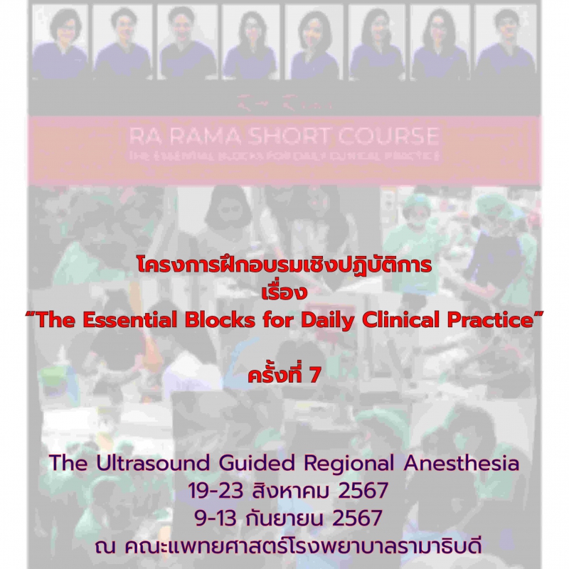 โครงการฝึกอบรมเชิงปฏิบัติการ เรื่อง “The Essential Blocks for Daily Clinical Practice” ครั้งที่ 7 The Ultrasound Guided Regional Anesthesia