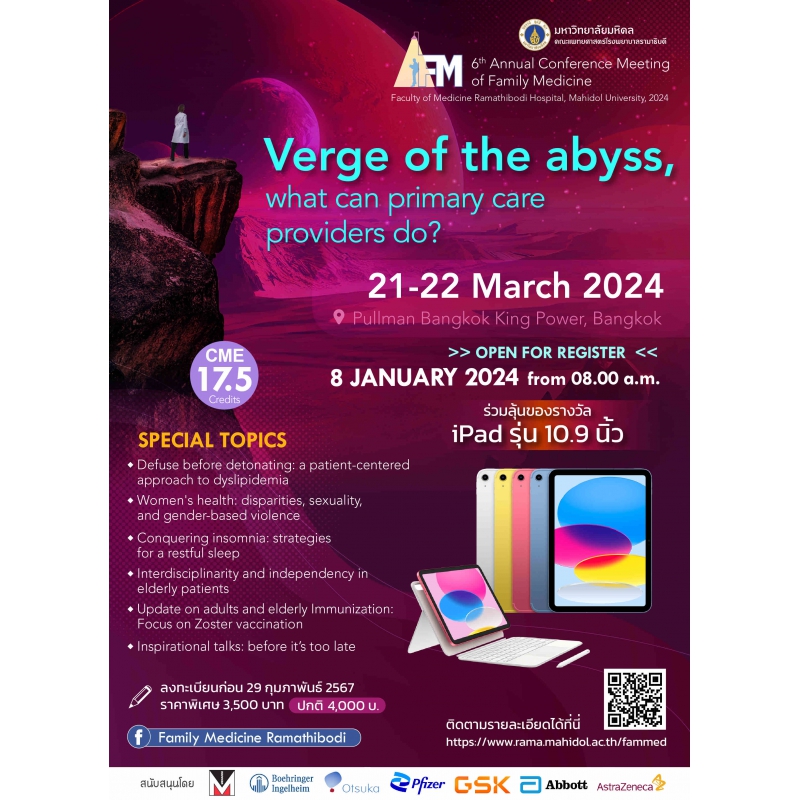 การประชุมวิชาการเวชศาสตร์ครอบครัวรามาธิบดี ครั้งที่ 6 Verge of the abyss, what can primary care providers do?