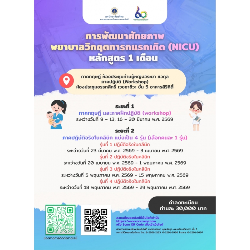 โครงการ: การพัฒนาศักยภาพพยาบาลวิกฤตทารกแรกเกิด (NICU) หลักสูตร 1 เดือน