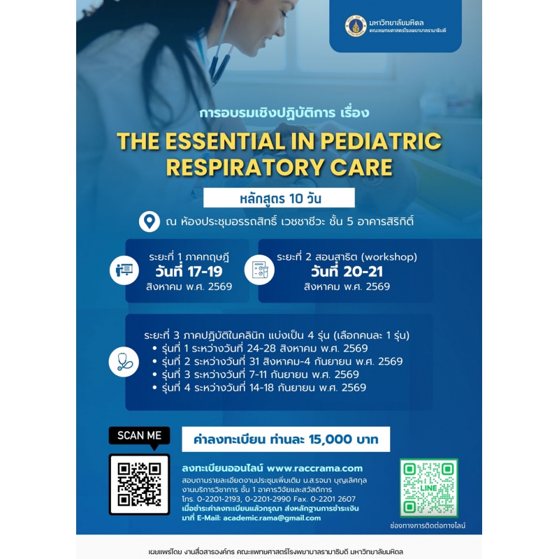 การอบรมเชิงปฏิบัติการเรื่อง The essential in pediatric respiratory care (หลักสูตร 10 วัน)
