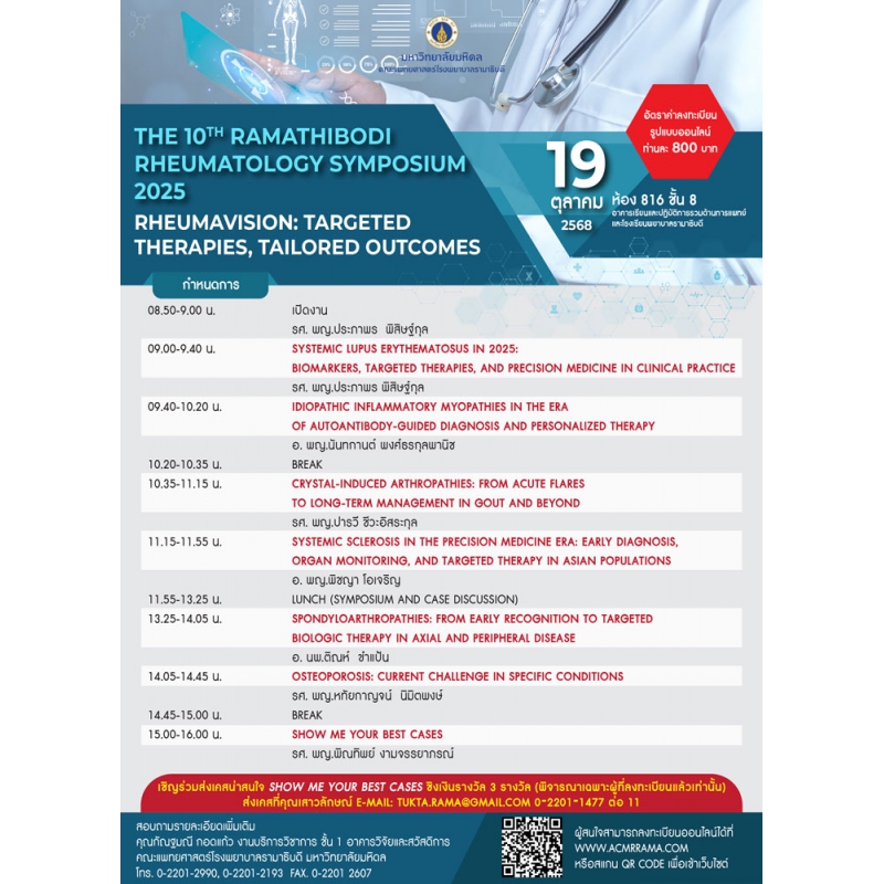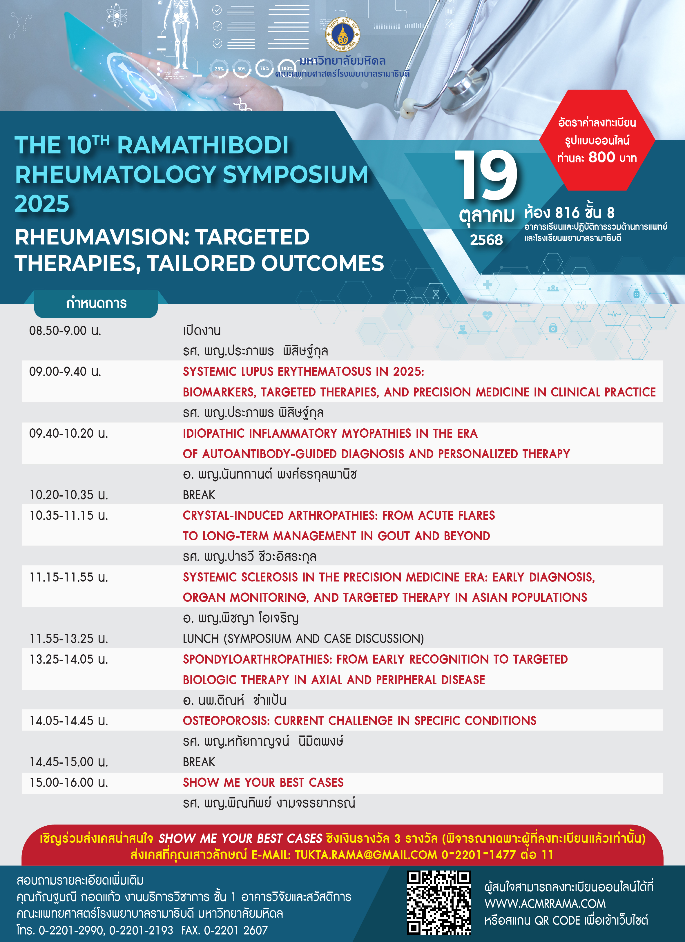ประชุมวิชาการ เรื่อง "The 10th Ramathibodi Rheumatology Symposium 2025: RheumaVISION: Targeted Therapies, Tailored Outcomes"