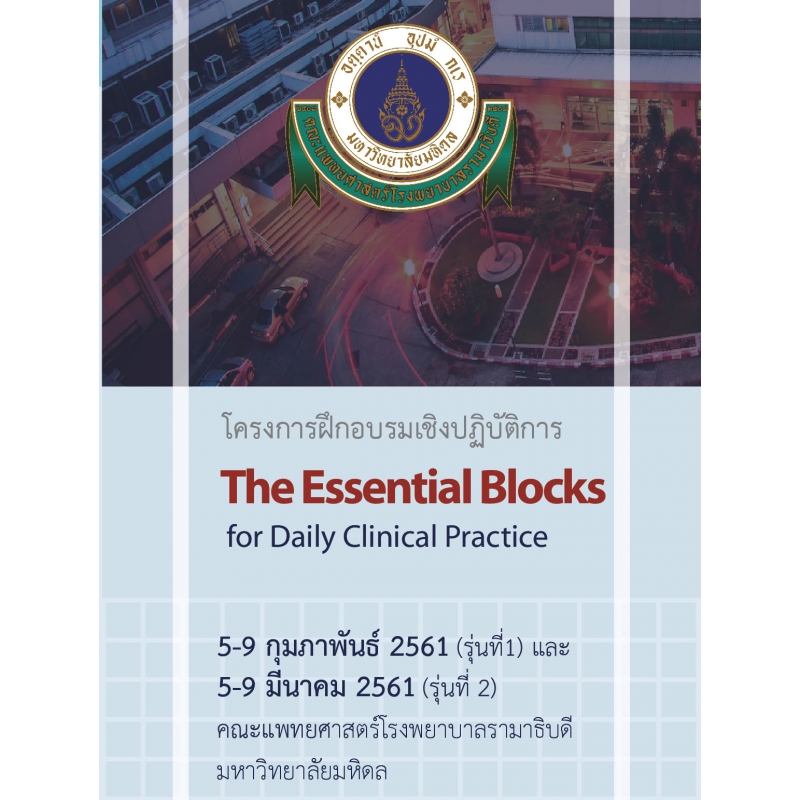 ปิดรับลงทะเบียนแล้ว การอบรมเชิงปฏิบัติการ เรื่อง "The Essential Blocks for Daily Clinical Practice"
