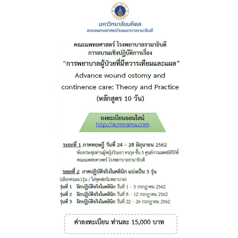 การพยาบาลผู้ป่วยที่มีทวารเทียมและแผล Advance wound ostomy and continence care: Theory and Practice (หลักสูตร 10 วัน)