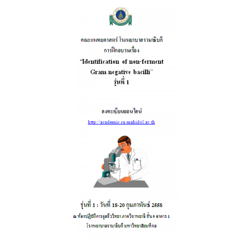 เป็นที่ทราบกันโดยทั่วไปว่า ปัญหาหลักของการสาธารณสุขของประเทศด้านหนึ่งคือปัญหาโรคติดเชื้อ ที่ครอบคลุมเชื้อแบคทีเรีย เชื้อรา เชื้อไวรัส รวมถึงปรสิตต่างๆ ซึ่งในการวิวัฒนาการของเชื้อก่อโรคเหล่านี้มีความรวดเร็วเท่าทันความก้าวหน้าทางเทคโนโลยีด้านการแพทย์ ดังที่จะเห็นได้จากการเกิดขึ้นของเชื้อก่อโรคอุบัติใหม่และอุบัติซ้ำ (Emerging and re-emerging infectious diseases) อยู่เป็นระยะๆ ดังนั้นเพื่อให้กระบวนการวินิจฉัยเชื้อก่อโรคต่างๆในคนเป็นไปอย่างถูกต้อง รวดเร็ว อันจะมีส่วนช่วยให้แพทย์พิจารณาเลือกวิธีการรักษาได้อย่างมีประสิทธิภาพสูงสุด โดยหน่วยจุลชีววิทยา ภาควิชาพยาธิวิทยา เล็งเห็นถึงความสำคัญในการที่จะเพิ่มศักยภาพของบุคลากรที่ปฏิบัติงานด้านจุลชีววิทยาในห้องปฏิบัติการของสถานพยาบาลต่างๆทั่วประเทศ จึงจัดให้มีการฝึกอบรมการวินิจฉัยเชื้อแบคทีเรียก่อโรค โดยเน้นที่กลุ่มเชื้อ NFB เนื่องจากเชื้อแบคทีเรียกลุ่มดังกล่าว เป็นกลุ่มของเชื้อก่อโรคที่มีความหลากหลายและวินิจฉัยได้ค่อนข้างยาก ประกอบกับเชื้อในกลุ่มนี้หลายชนิดมีความคล้ายคลึงกันในลักษณะทางกายภาพและชีวภาพ แต่ความสำคัญและความรุนแรงในการก่อโรคต่างกัน ต้องอาศัยความรู้ความชำนาญในการวินิจฉัย ประกอบกับมีการเปลี่ยนแปลงของชื่อเชื้อบ่อย อาจทำให้เกิดความสับสนของการรายงานผลได้ง่าย