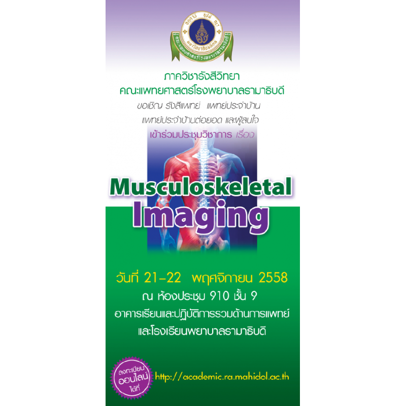 ภาควิชารังสีวิทยา คณะแพทยศาสตร์โรงพยาบาลรามาธิบดี เล็งเห็นความสำคัญของการพัฒนาความรู้ทางด้านรังสีวิทยาในทุกๆ รูปแบบ ซึ่งในปัจจุบันนี้ วิทยาการทางด้านรังสีวิทยาได้มีการเปลี่ยนแปลงไปมากทั้งในด้านของเครื่องมือที่มีเทคโนโลยีทันสมัย การตรวจวินิจฉัย และการดูแลผู้ป่วยโรคกระดูกและข้อ ซึ่งผู้ป่วยจำนวนมากอาจต้องรับการรักษาด้วยการผ่าตัด การวินิจฉัยจึงต้องมีความถูกต้องแม่นยำ และผิดผลาดให้น้อยที่สุดจึงเห็นสมควรให้มีการจัดประชุมวิชาการ "Musculoskeletal Imaging" ขึ้น โดยมุ่งหวังที่จะให้มีการพัฒนาความรู้ทางด้านรังสีวิทยาของโรคกระดูกและข้อ เทคนิควิธี แลกเปลี่ยนประสบการณ์ เพิ่มศักยภาพให้แก่รังสีแพทย์ และบุคลากรที่มีความสนใจงานด้านรังสีวิทยาของโรคกระดูกและข้อ เพื่อนำไปประยุกต์ใช้ให้เกิดประโยชน์ในด้านการรักษาพยาบาล การเรียนการสอน ตลอดจนงานวิจัย ให้เป็นไปตามมาตรฐานต่อไป