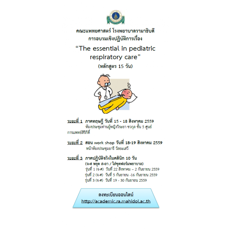 The essential in pediatric respiratory care (หลักสูตร 15 วัน)