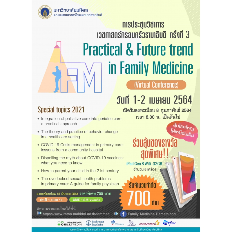 โครงการการประชุมวิชาการเวชศาสตร์ครอบครัวรามาธิบดี ครั้งที่ 3 Practical and Future trend in Family Medicine