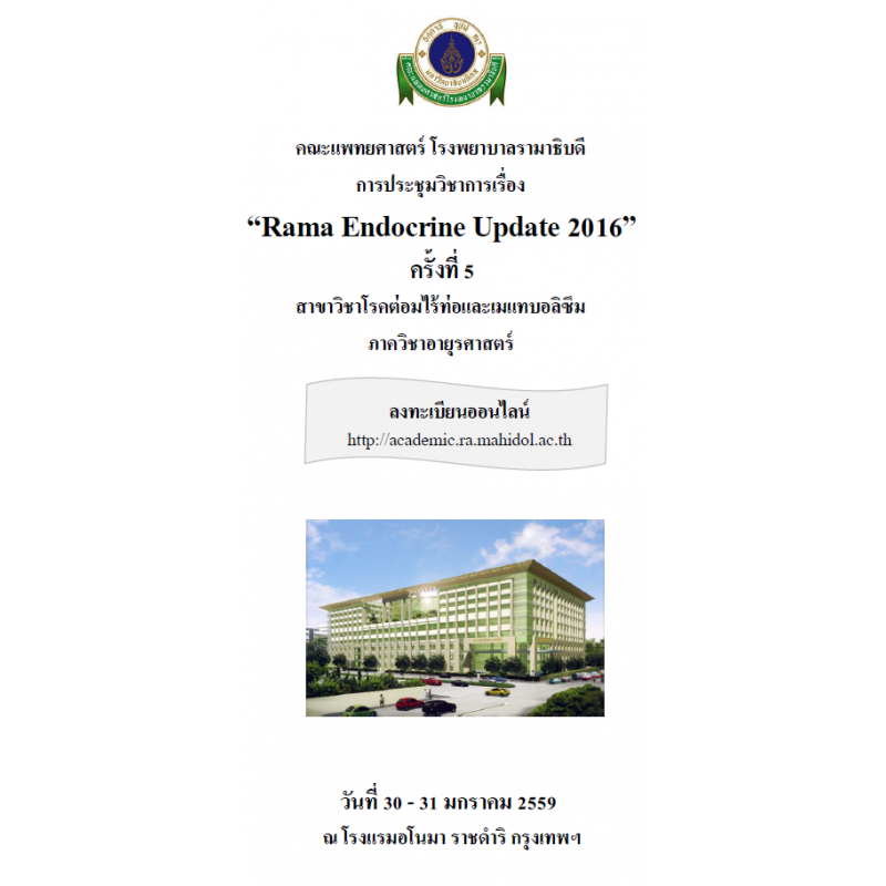 โรคทางระบบต่อมไร้ท่อประกอบด้วยโรคต่างๆ หลายชนิด โรคที่พบได้บ่อย ได้แก่ โรคเบาหวาน โรคของต่อมไทรอยด์ ไขมันในเลือดผิดปกติ โรคกระดูกพรุน นอกจากนี้ยังมีโรคอื่นๆ ซึ่งถึงแม้จะพบได้น้อยกว่า แต่ก็มีความสำคัญอย่างมากเช่นเดียวกัน เช่น โรคของต่อมใต้สมองโรคของต่อมหมวกไต และโรคที่เกี่ยวข้องกับการเจริญเติบโต เป็นต้น ในปัจจุบัน ได้มีองค์ความรู้ที่เพิ่มขึ้นอย่างมากเกี่ยวกับโรคในระบบต่อมไร้ท่อ ทั้งในแง่ความรู้ความเข้าใจใหม่ๆ ทางด้านพยาธิสรีรวิทยาของโรค ความก้าวหน้าในการตรวจวินิจฉัยโรค รวมทั้งแนวทางการรักษาใหม่ๆ ที่ช่วยทำให้คุณภาพการดูแลผู้ป่วยดีขึ้น ทางหน่วยต่อมไร้ท่อฯ ภาควิชาอายุรศาสตร์ จึงมีความเห็นว่าควรมีการจัดประชุมวิชาการเกี่ยวกับโรคระบบต่อมไร้ท่อขึ้น เพื่อเป็นการทบทวนความรู้เกี่ยวกับโรคทางระบบต่อมไร้ท่อ รวมถึงนำเสนอข้อมูลใหม่ๆ ที่เกิดขึ้นในช่วงระยะเวลา ๒ - ๓ ปีที่ผ่านมา ทั้งนี้เพื่อให้แพทย์ที่ปฏิบัติงานด้านอายุรศาสตร์ต่อมไร้ท่อฯ ได้มีโอกาสเพิ่มพูนความรู้และศักยภาพในการดูแลรักษาผู้ป่วยให้ได้ดีขึ้น นอกจากนี้ ในประเทศไทย ยังไม่เคยมีการประชุมวิชาการที่จัดเฉพาะเพื่อแพทย์ที่ปฏิบัติงานด้านอายุรศาสตร์ต่อมไร้ท่อฯ มาก่อน การจัดประชุมวิชาการครั้งนี้ จึงนับเป็นโอกาสดีที่ทางคณะแพทยศาสตร์ โรงพยาบาลรามาธิบดีจะได้เป็นผู้ริเริ่มการให้บริการวิชาการแก่แพทย์ผู้ปฏิบัติงานด้านอายุรศาสตร์ต่อมไร้ท่อฯ