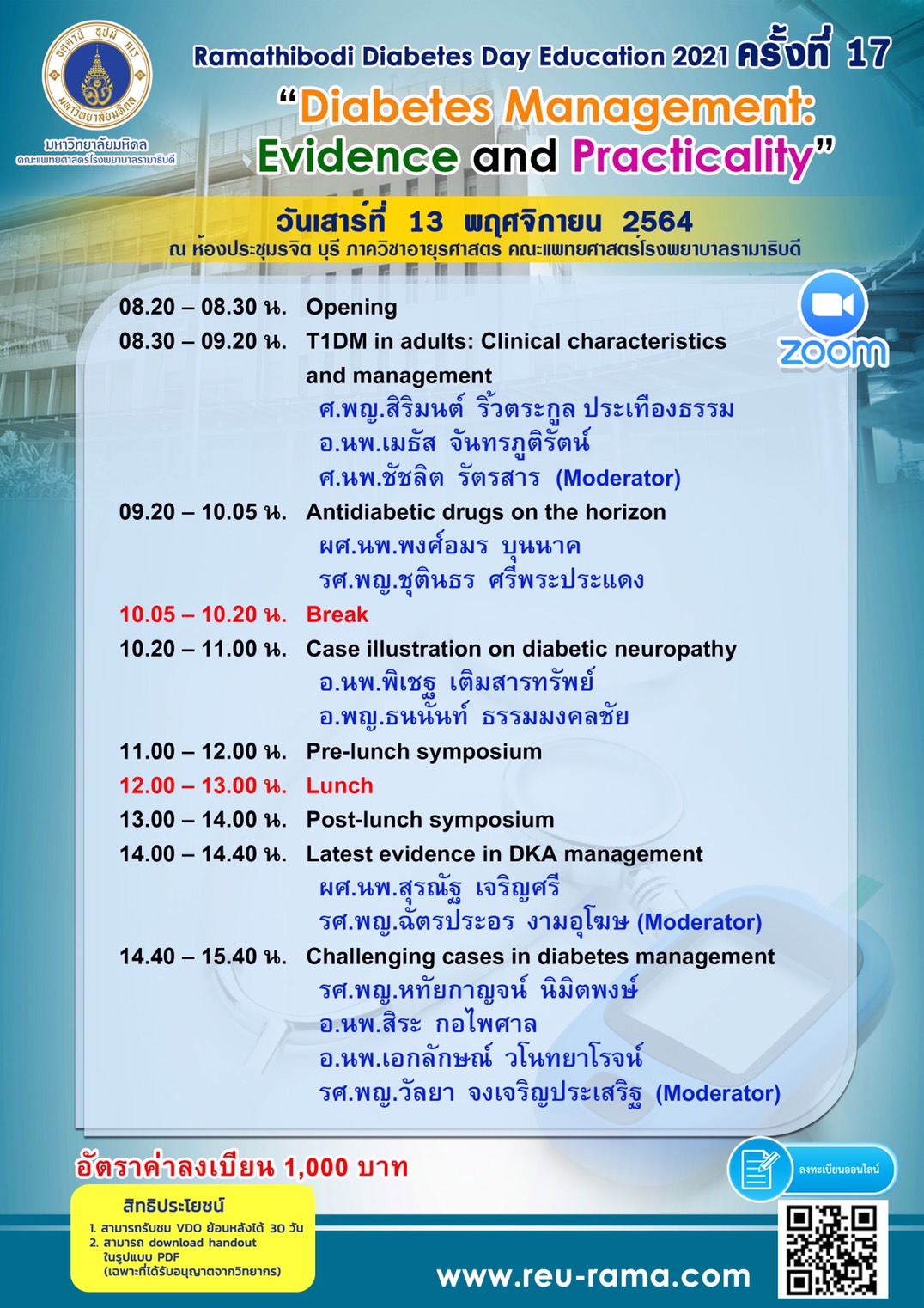 โครงการประชุมวิชาการ Ramathibodi Diabetes Day Education 2021 ครั้งที่ 17 เรื่อง Diabetes Management: Evidence and Practicality