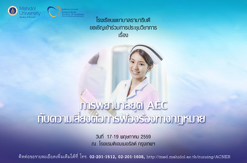 สอบถามรายละเอียดเพิ่มเติมได้ที่โทร. 02-201-0623 ลงทะเบียนผ่านทางเว็บไซต์ที่ : http://med.mahidol.ac.th/nursing/ACNER/list_items.php?pid=59 |