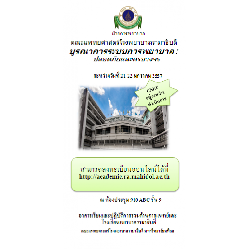 สถานที่จัด : ห้อง 910 ABC อาคารเรียนและปฏิบัติการรวมด้านการแพทย์และโรงเรียนพยาบาลรามาธิบดี คณะแพทยศาสตร์โรงพยาบาลรามาธิบดี