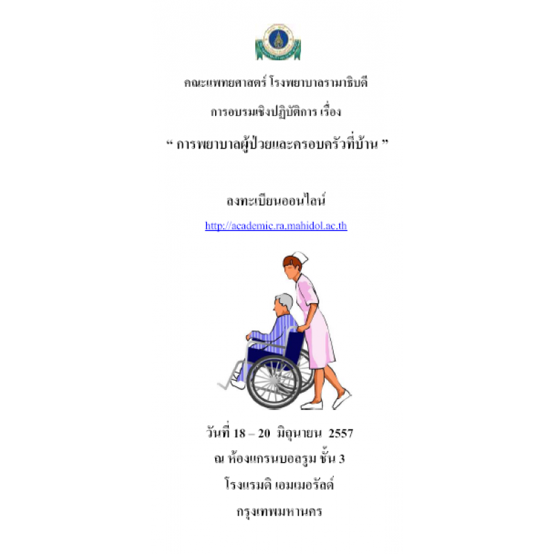 งานการพยาบาลป้องกันโรคและส่งเสริมสุขภาพ ฝ่ายการพยาบาลโรงพยาบาลรามาธิบดี คณะแพทยศาสตร์โรงพยาบาลรามาธิบดี มหาวิทยาลัยมหิดล จึงได้จัดการอบรมเชิงปฏิบัติการนี้ขึ้น เพื่อเป็นการพัฒนาความรู้ความสามารถของพยาบาลและเจ้าหน้าที่สาธารณสุขในการพยาบาลผู้ป่วยและครอบครัวที่บ้าน