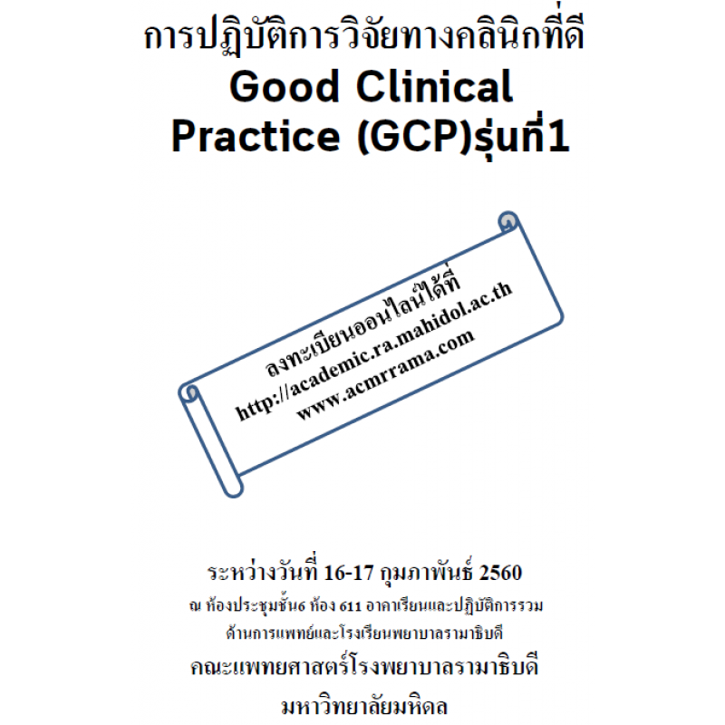 การปฏิบัติการวิจัยทางคลินิกที่ดี Good Clinical Practice (GCP) รุ่นที่1