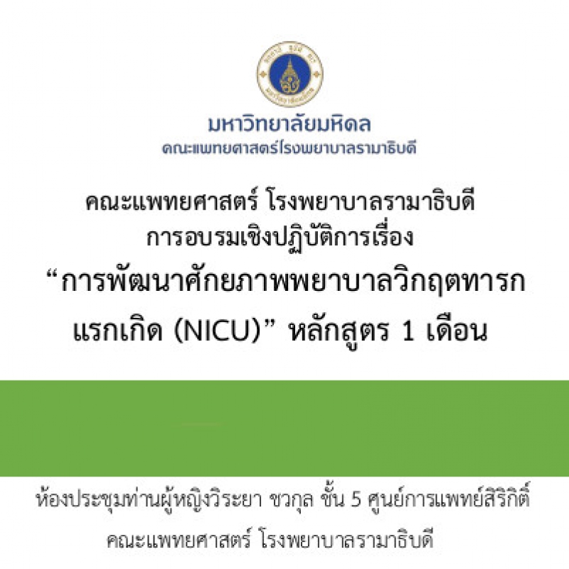 การพัฒนาศักยภาพพยาบาลวิกฤตทารกแรกเกิด (NICU) หลักสูตร 1 เดือน