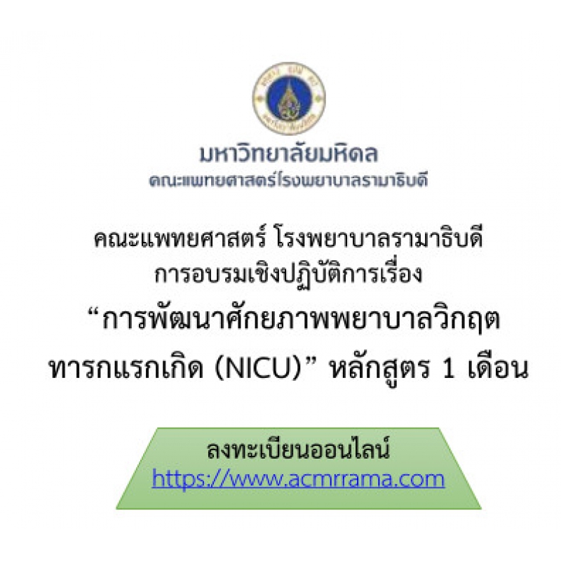 การพัฒนาศักยภาพพยาบาลวิกฤตทารกแรกเกิด (NICU) หลักสูตร 1 เดือน