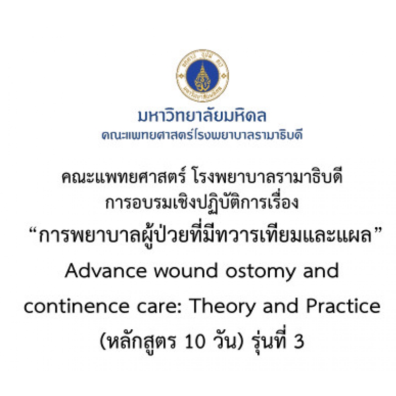 โครงการ อบรมวิชาการ การพยาบาลผู้ป่วยที่มีทวารเทียม แผล และควบคุมการขับถ่าย ครั้งที่ 3 Advance wound ostomy and continence care: Theory and Practice (หลักสูตร 10 วัน)