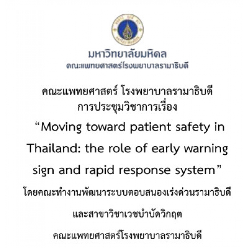 โครงการจัดประชุมวิชาการ เรื่อง “Moving toward patient safety in Thailand:the role of early warning sign and rapid response system By Ramathibodi rapid respone system committee”