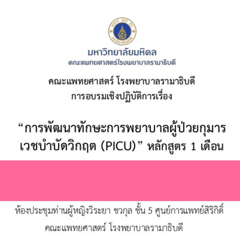 การพัฒนาทักษะการพยาบาลผู้ป่วยกุมารเวชบำบัดวิกฤต (PICU) หลักสูตร 1 เดือน