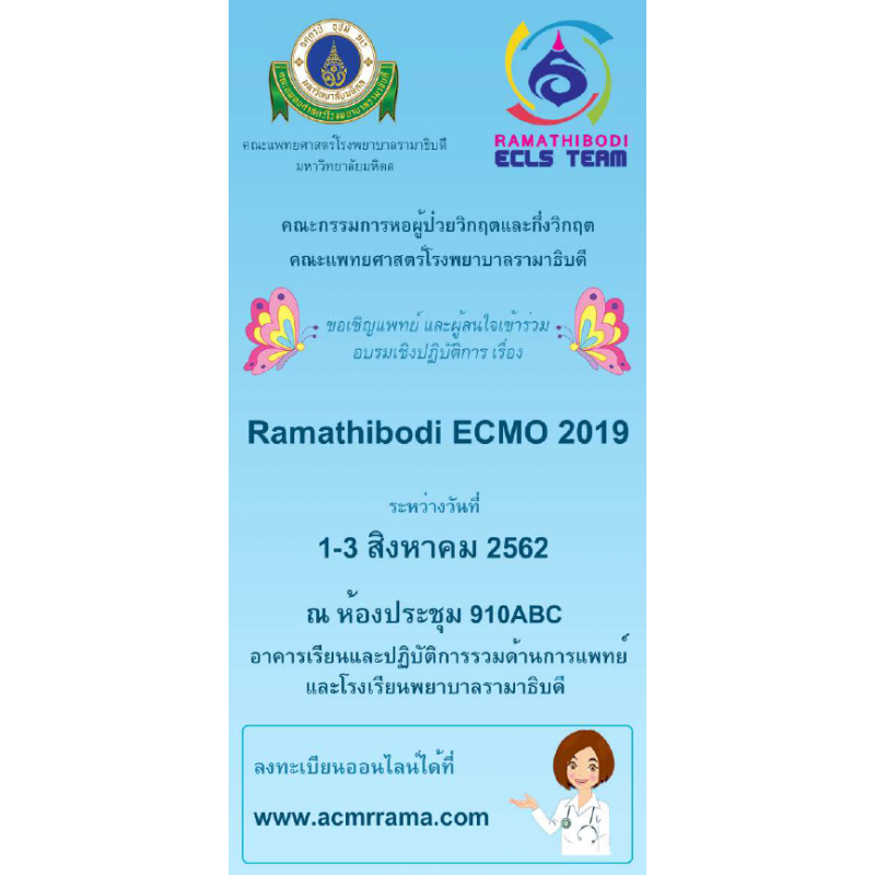 ดังนั้นเพื่อให้ผลลัพธ์ของอัตราการรอดชีวิตในผู้ป่วยวิกฤตจากภาวะหัวใจหรือหายใจล้มเหลวที่รุนแรงเพิ่มมากขึ้น คณะกรรมการดูแลผู้ป่วยด้วยเครื่องพยุงการทำงานหัวใจ และ/หรือปอด เล็งเห็นถึงความสำคัญนี้จึงได้มีความคิดในการจัดทำโครงการอบรมเชิงปฏิบัติการเรื่อง “Ramathibodi ECMO 2019” ขึ้น โดยมีการบรรยายและฝึกปฏิบัติให้ผู้เข้าอบรมได้ฝึกปฏิบัติจริง เพื่อให้บุคลากรทางการแพทย์ มีความรู้ความเข้าใจและสามารถปฏิบัติได้อย่างถูกต้องในสถานการณ์จริง