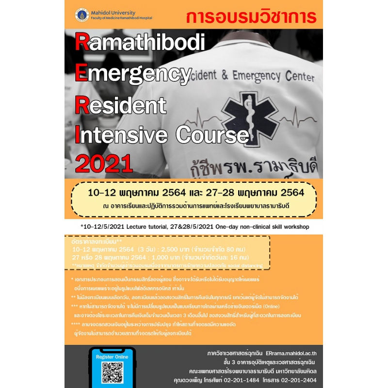 การทบทวนความรู้เพื่อความเป็นแพทย์ฉุกเฉินสมบูรณ์แบบ (Ramathibodi Emergency Resident Intensive Course; RERI 2021)